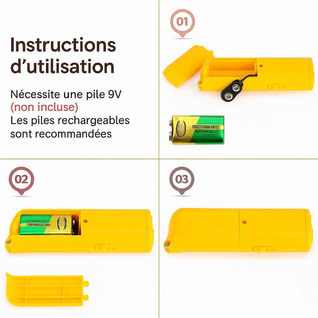 Il émet des ondes ultrasoniques inaudibles pour l’homme, mais qui éloignent immédiatement les chiens. Vous ne l’entendez pas et vous ne dérangez pas votre entourage — une solution silencieuse mais puissante